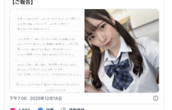 赶在2026年到来之前,上坂めい (上坂芽衣 )在社群宣布引退!她在声明中是这么说的,在年底,她决定将自己4年的AV生涯画下句点:在这四年间她遇见了非常多的人也经历了各式各样的事情,对于一路上支持自己的朋友,上坂めい(上坂芽衣 )心中充满了无限的感谢,接下来,她要踏上全新的道路,一面面对真正的自己,一面迈向人生的下一个阶段,感谢大家到现在为止的支持与陪伴,也衷心祝福大家往后的每一天平稳幸福: